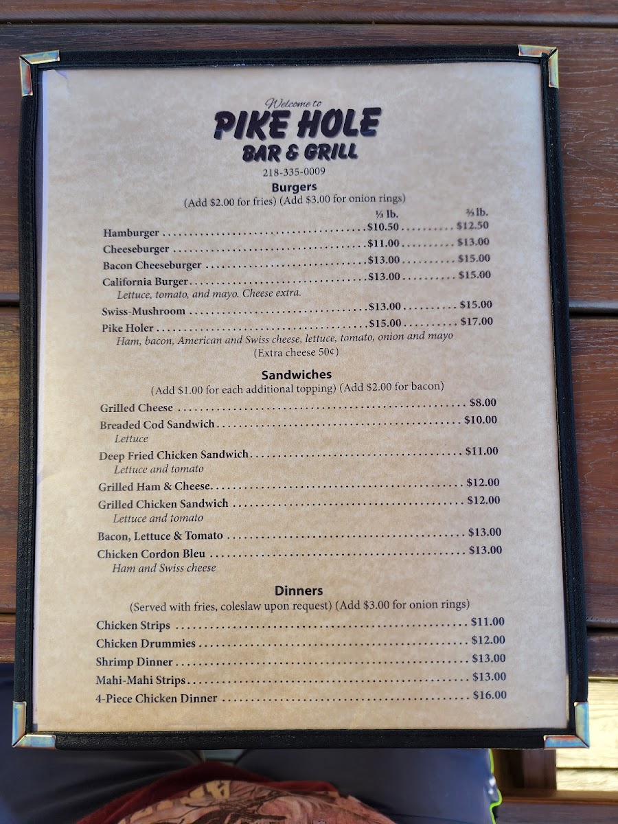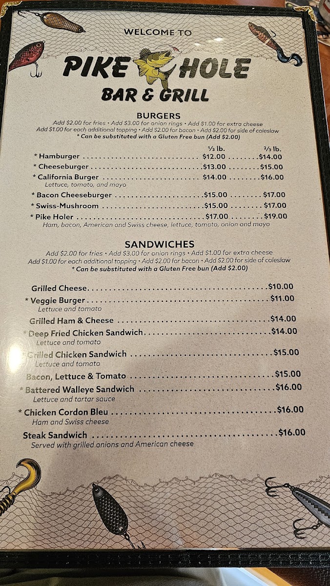 The menu at Pike Hole Bar And Grill offers a variety of comfort food and classic bar bites that cater to both light and hearty appetites. One standout item is the Grilled Ham & Cheese Sandwich, a simple yet satisfying choice that's perfect for a quick meal or paired with a side. The restaurant also serves a signature Bloody Mary with Budweiser, a great drink option for those looking to enjoy something with a kick, making it a popular choice for brunch or casual gatherings. For a delicious appetizer, the Mozzarella Cheese Sticks are a must-try, crispy on the outside and perfectly gooey on the inside. The menu highlights a blend of familiar favorites and local favorites, ensuring there is something for everyone to enjoy. Whether you're there for a casual snack or a full meal, Pike Hole Bar And Grill delivers in both flavor and atmosphere.